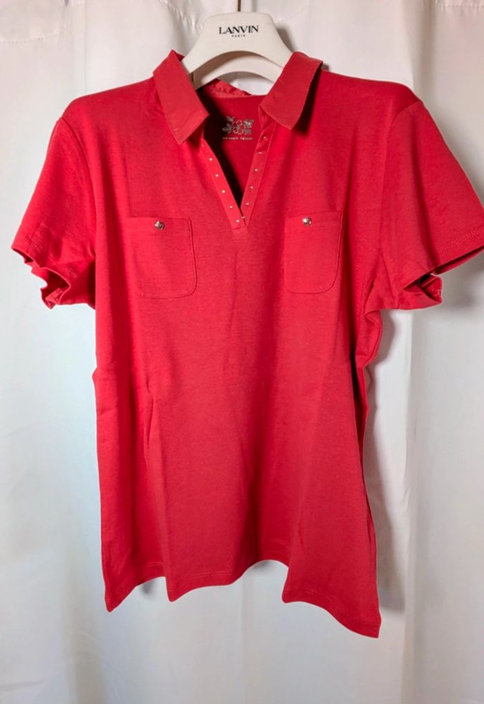 Tee-shirt col polo strass couleur pastèque Taille 4 neuf Armand Thiery
