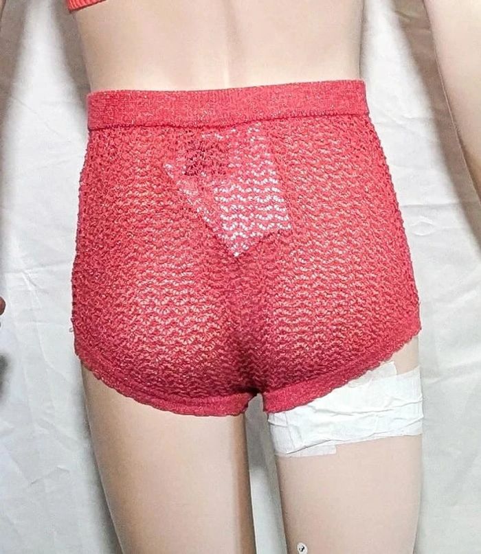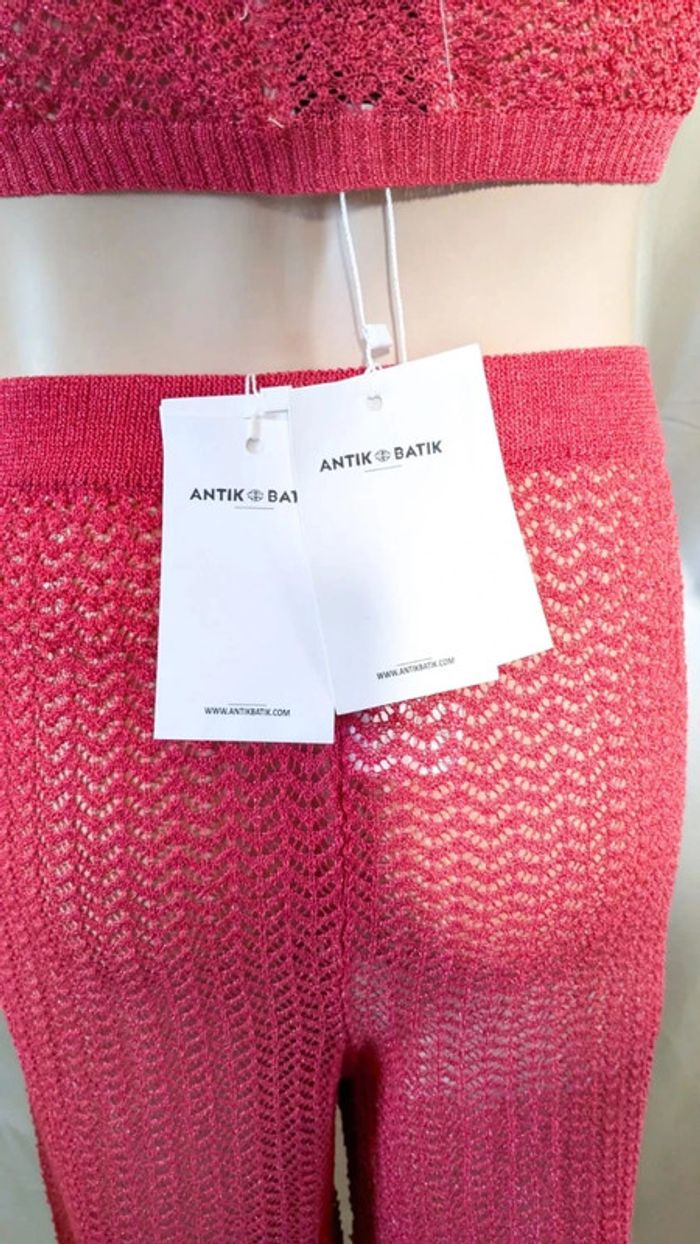 Shorty en maille mélangée. Maille ajourée. Taille élastiquée. Couleur corail : Rose pailleté Taille tel que noté sur l'étiquette XS /36 Longueur totale : 31cm. Tour de taille : 60cm. Correspond a un 34/36 Tissu principal : 77% Viscose, 15% Nylon, 8% Lurex. Lavage main. Laver séparément. Ne pas tremper. Pas de blanchiment. Repasser à une température moyenne maximale de 110°C. Pas de nettoyage professionnel à sec. Ne pas sécher en sèche-linge à tambour. La mannequin mesure 170cm. #sortcourt #antikbatik #mailleajourée
