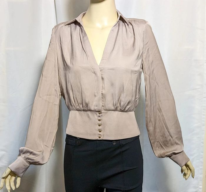 Blouse manches longues taupe Morgan Taille 36 Blouse manches longues taupe femme Taille 36 Blouse manches longues Coupe droite Col en V à revers Manches longues Empiècement smocké dans le dos Boutons décoratifs sur l'avant de la taille Manches bouffantes Poignets boutonnés 100% Polyester Neuf avec étiquette Prix boutique 55€ #morgan #morgandetoi #morganfemme #morgandetoifemme #blousefemme #blousemancheslongues #topcolv