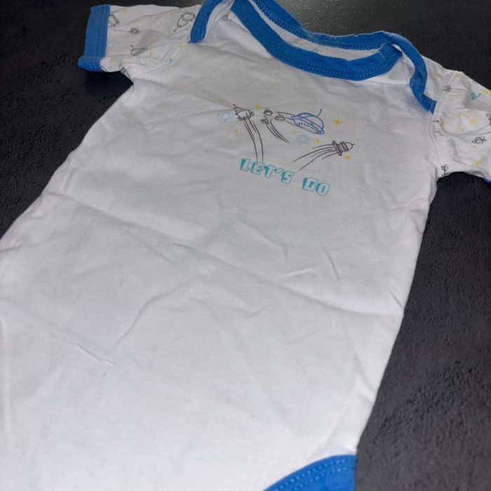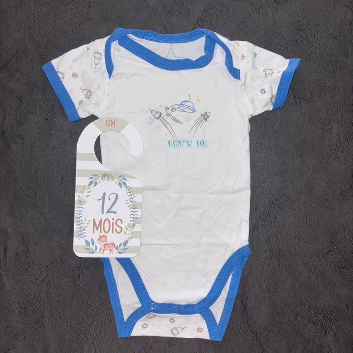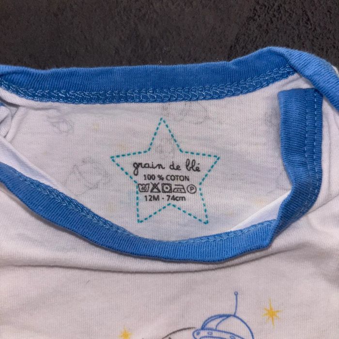 Body blanc bleu fusé Grain de blé / 12 mois / Très bon état - photo numéro 4