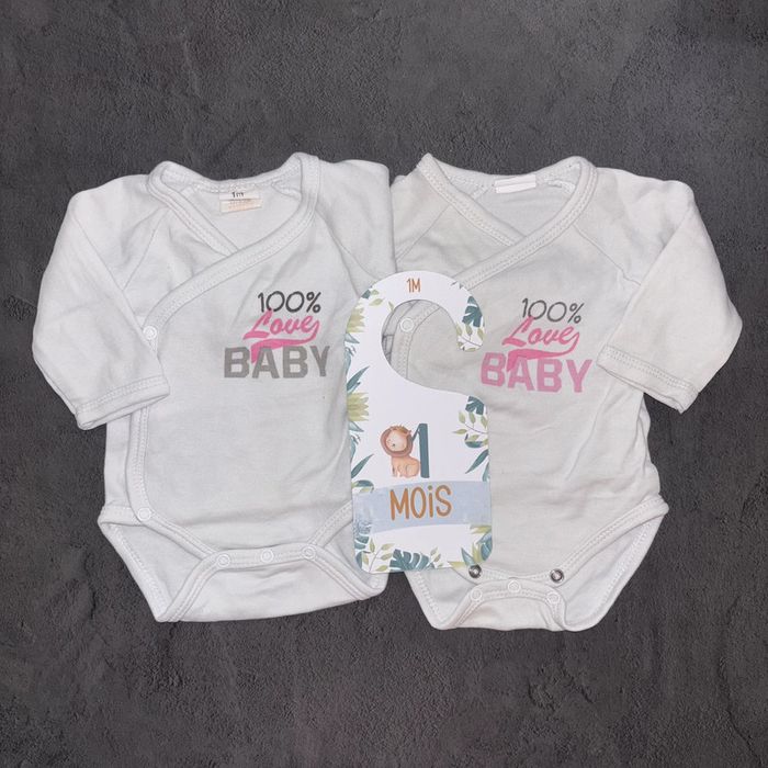 Body blanc 100% love baby / 1 mois / Bon état - photo numéro 3