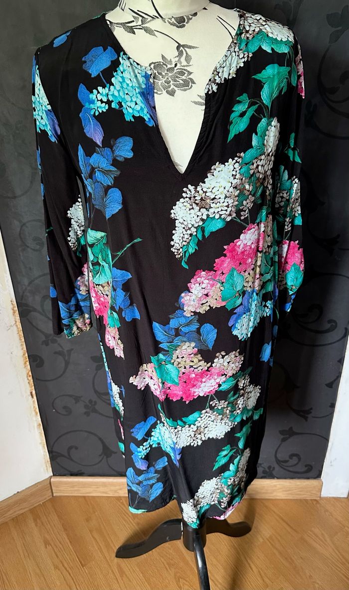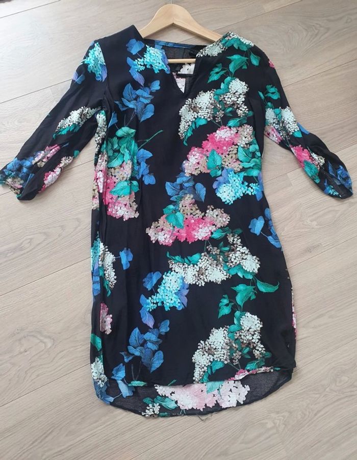 Robe droite fluide noire fleurie Mango taille 38/40 - photo numéro 2