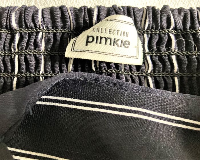 Marque "Pimkie", poitrine doublée, dos smocké, 2 poches côtés, jambes larges (34 cm). Tour de poitrine (minimum 80 cm), longueur 115 cm (hors bretelles). Matière légère, fluide et infroissable 100% polyester.