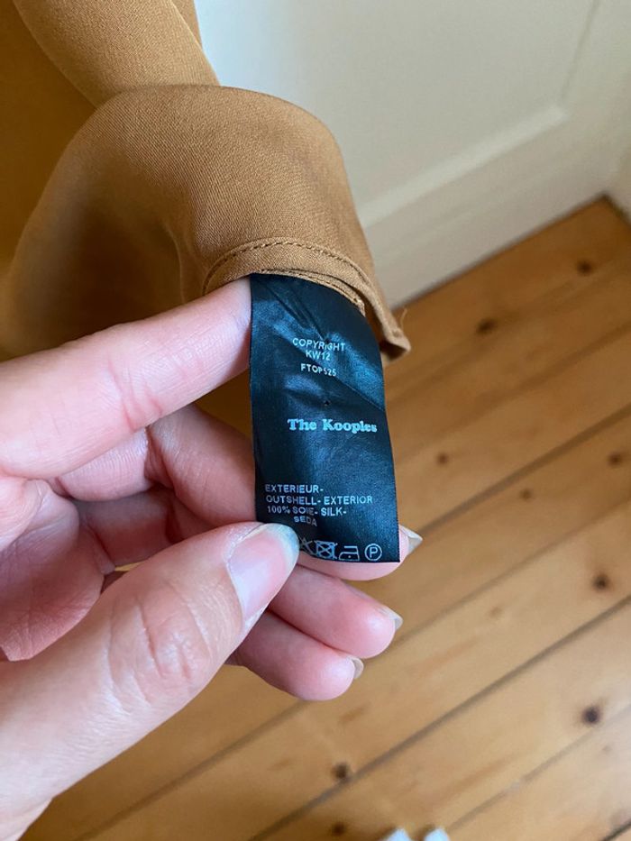 Jolie blouse 100% soie The Kooples taille S couleur camel Petit défaut a peine visible en photo ce qui explique son prix. Envoi sous 24h 🚚📦