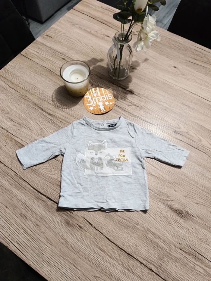 T-shirt manches longues ouverture complète à l'arrière Taille 3 mois Marque Kiabi Très bon état #laurianeg3mois