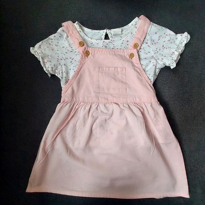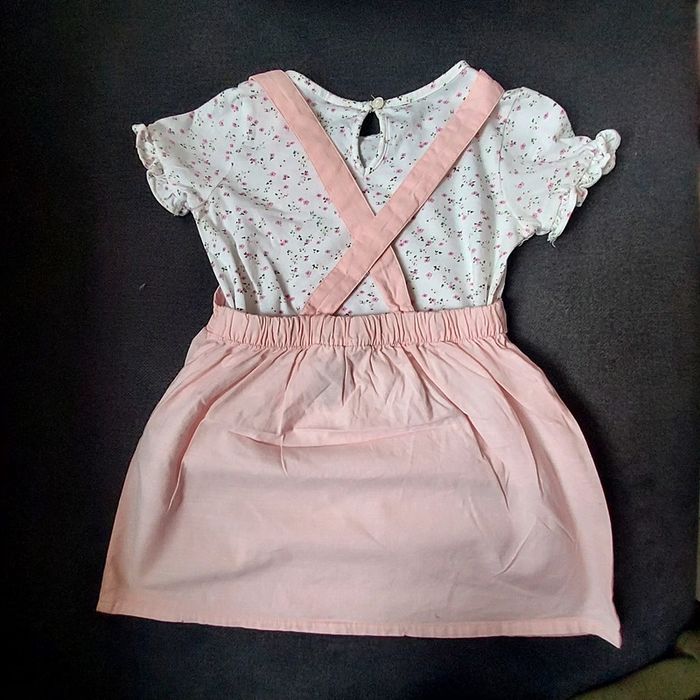 Très peu portée, très bon état, très légère tâche beige sur le t-shirt (voir dernière photo) très peu visible et non gênante car il y a la robe par dessus. 12-18 mois (86cm)