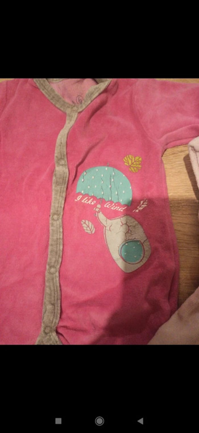 Lot de 3 pyjamas velours Taille 6 mois Marques Obaïbi, mots d'enfants Bon état général - les couleurs sont un peu passées et les impressions abîmées (voir photo)