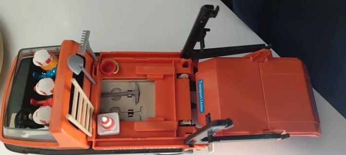 Playmobil N 3471, le camion porte-conteneurs, avec 3 ouvriers. Nombreux outils & accessoires. Vintage.