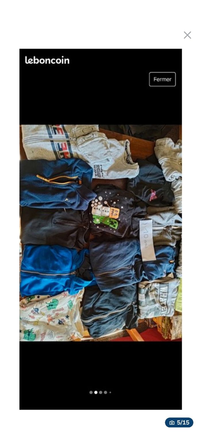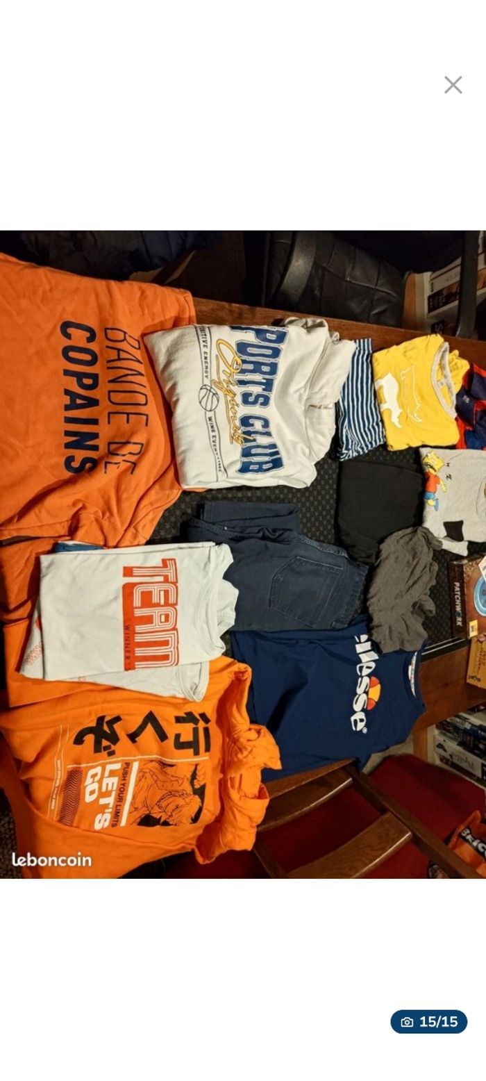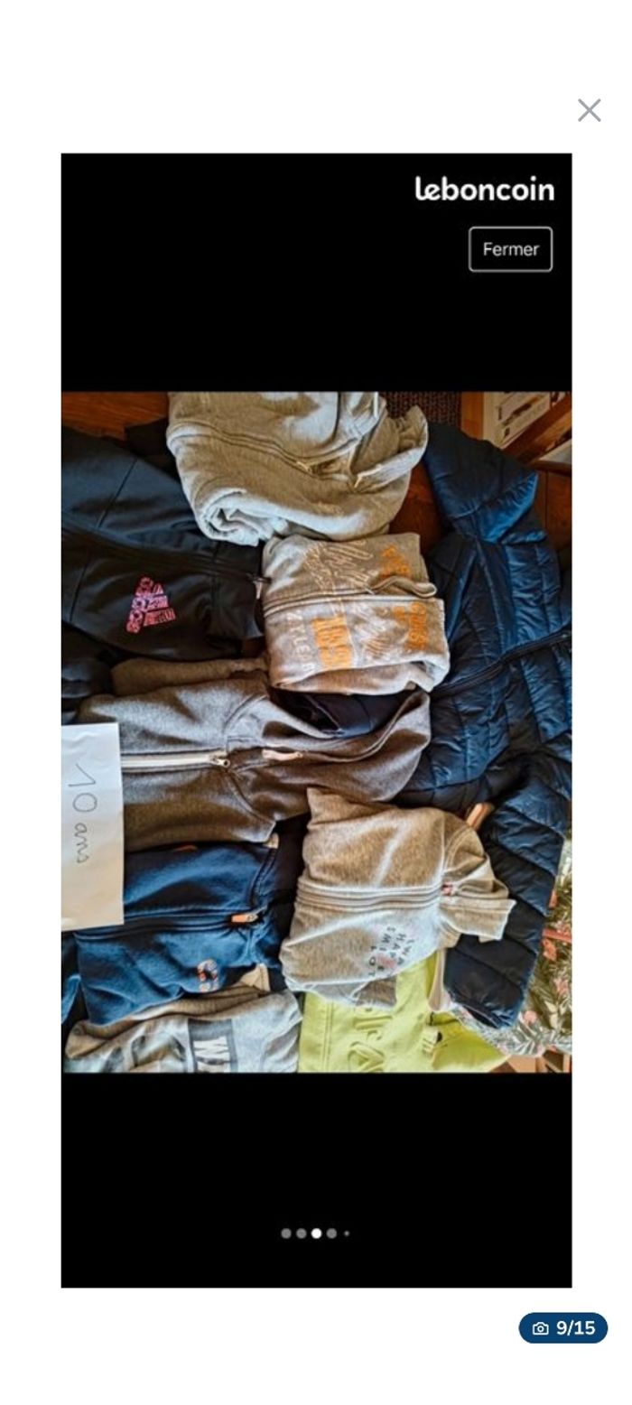 Maison non-fumeur et sans animaux Envoie possible et livraison possible sur Sens et les alentours Un blouson motif fleur vert et rose Un blouson noir sans capuche Fais une doudoune bleu marine Kiabi Un sweat gris clair à capuche avec écriture always happy my lot Un sweat noir Nike à capuche Un sweat vert fluo de marque liberto Un sweat à capuche 1895 écris en orange un sweat à capuche gris numéro 89 écrit au milieu Un sweat bleu marine à capuche Gémo Un sweat gris à capuche sans inscription Un sweet bleu marine à capuche sans inscription de marque Kiabi Un sweat à capuche noir Kiabi Une veste de jogging adidas écrit en rose Un sweat Minecraft à capuche Un sweat gris de marque complice Un sweat avec plein de motifs dinosaures Un sweat à capuche bleu Kiabi Un t-shirt manches longues noir Nike pour le sport Une polaire bleu marine Un sweat sans capuche de marque freegun gris Un sweat gris à capuche de marque Creeks une doudoune sans manche noire une doudoune bleu marine Kiabi quasi neuve un blouson Vertbaudet à capuche bleu marine avec moumoute sur la capuche qui peut s'enlever un blouson imperméable noir et polaire à l'intérieur une doudoune nike noir un sweat fourré à capuche et fermeture éclair bleu marine de marque Vertbaudet un t-shirt manches courtes Naruto deux t-shirt manches longues blanc avec des motifs un t-shirt manches courtes the best un t-shirt manches courtes bleu marine Head un t-shirt manches courtes kipsta de chez Decathlon orange un t-shirt manches courtes kaki avec un dessin de rhinocéros un t-shirt manches courtes bleu Vertbaudet un polo Kiabi vers eau un t-shirt manches courtes blan la halle avec dessin de gamer un t-shirt manches longues bleu marine avec une jeep destinée dessus un t-shirt Predator Adidas noir et orange un sweat bleu ciel Okaïdi à fermeture et capuche un sweat capuche fourré bleu marine Okaïdi un sweat bleu vert avec une étoile dessinée au milieu à capuche un sweat One piece à capuche noir un sweat fortnite noir un sweat bleu blanc rouge Vertbaudet un sweat orange Dragon Ball z avec Sangoku un sweat gris à capuche et fermeture éclair un sweat bleu avec un skateboard sans capuche 7 bas de jogging : 4 Decathlon noirs , un Nike noir et un molleton noir quasi neuf+ plus un Gémo noir un sweat Vertbaudet bleu marine écrit London dessus un sweat crème Naruto à capuche 2 vestes de jogging Adidas de sport 1 sweat Jack & Jones bleu marine à capuche une chemise en jean manches longues un sweat avec un col sans capuche bleu et blanc je rajoute plusieurs pyjamas des t-shirts manches courtes 1 sweat le coq sportif 1 sweat nike gris 1 sweat nike sherpa noir 1 kway Benetton + quelques vêtements 12 ans deux sweat orange à capuche un sweat blanc un t-shirt ellesse bleu marine un jean bleu marine Vertbaudet 2 pyjamas