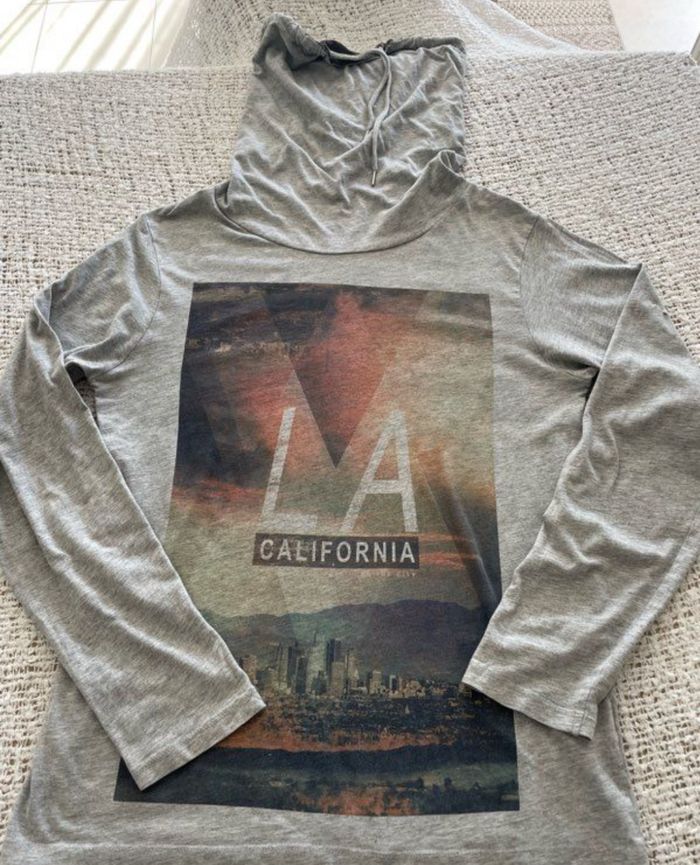 Teeshirt manches longues à grand col « Primark » taille M, un petit accroc sur le haut de l’arrière de la manche (recousu) voir dernière photo TBE Largeur épaules 46 cm Largeur mesure prise sous les aisselles 50cm Longueur 69 cm #sandra13190hommestailleM