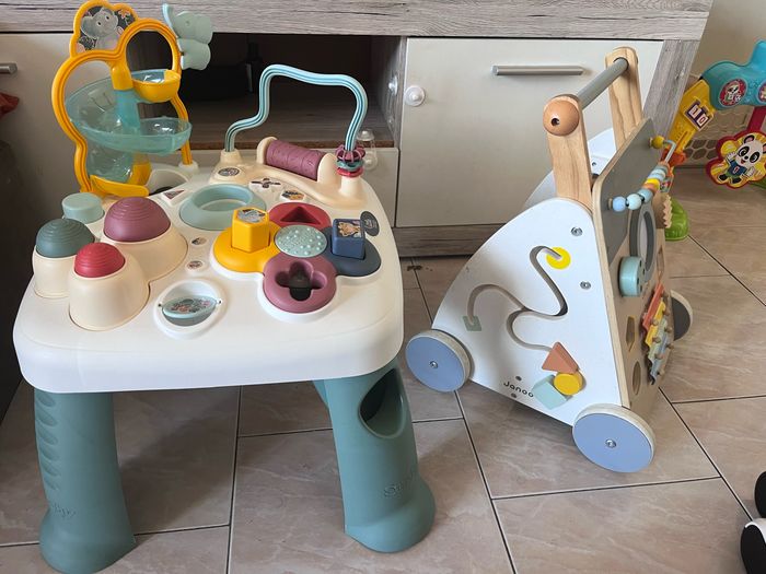 Je vends ce lot avec unchariot de marche janod et une table d’activité avec tous ses accessoires en tres bon etat
