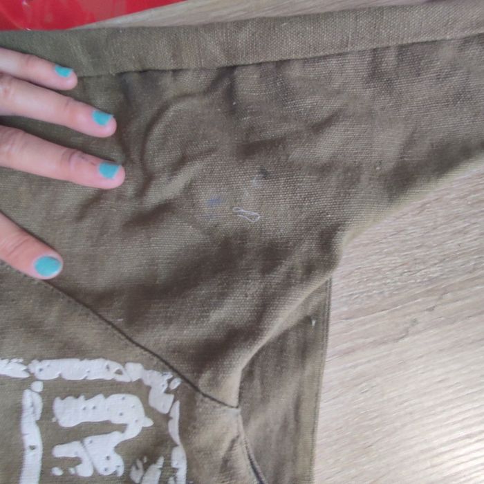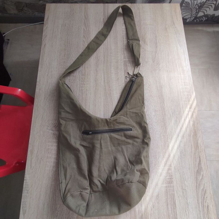 Sac bandoulière bonne état Petite tache qu'on voit pratiquement pas et juste il manque la languette de la fermeture sur la poche arrière qui n'empêche pas son fonctionnement.