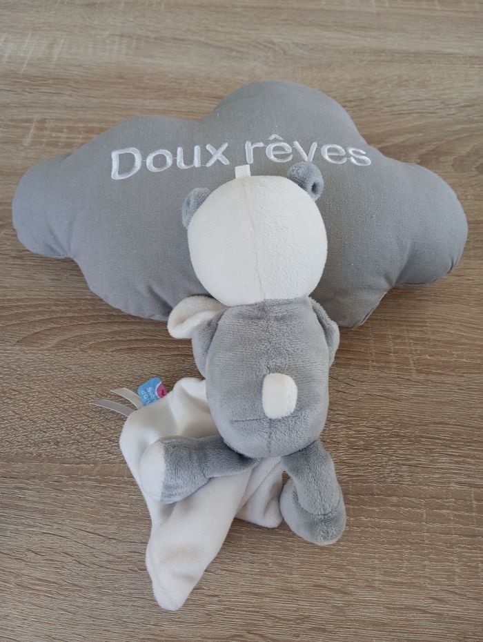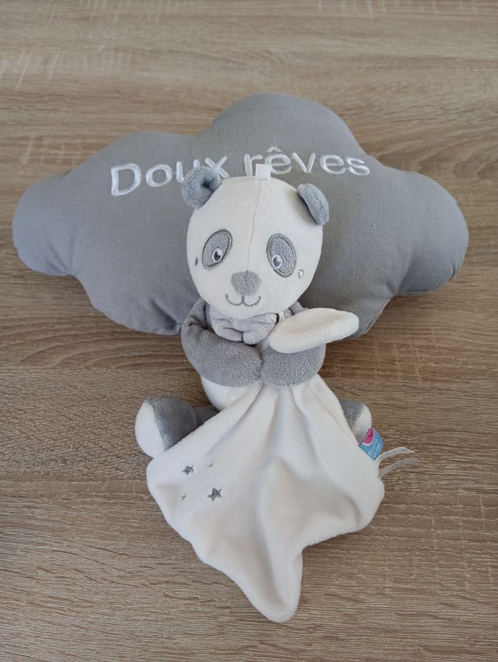 #DCR_sucredorge #DCR_panda Sucre d'orge Doudou panda Gris blanc Broderies étoiles C009