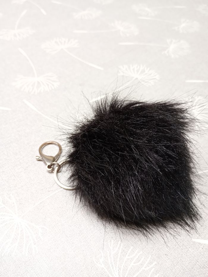 Porte clés avec gros pompon noir. Diamètre : 10 cm. Neuf.