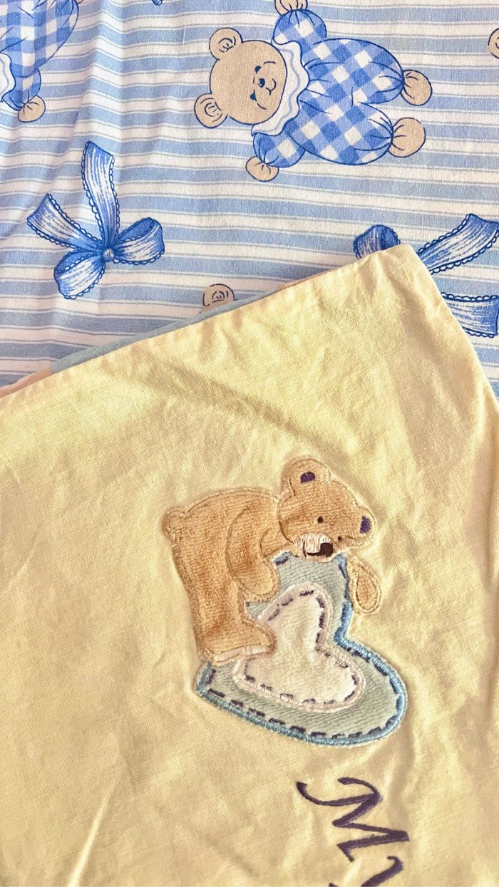 Housse de couette ourson Coloris bleu, blanc, beige 70 cm / 145 cm En coton (Légères traces) Drap plat petites souris (Mini traces sur le drap) Housse de coussin, taie d'oreiller oursons 33 cm / 41 cm (Mini trace sur la taie) Tout en coton Maison non fumeur et sans animaux 📩Je réponds rapidement aux messages 📦Envoi rapide et soigné