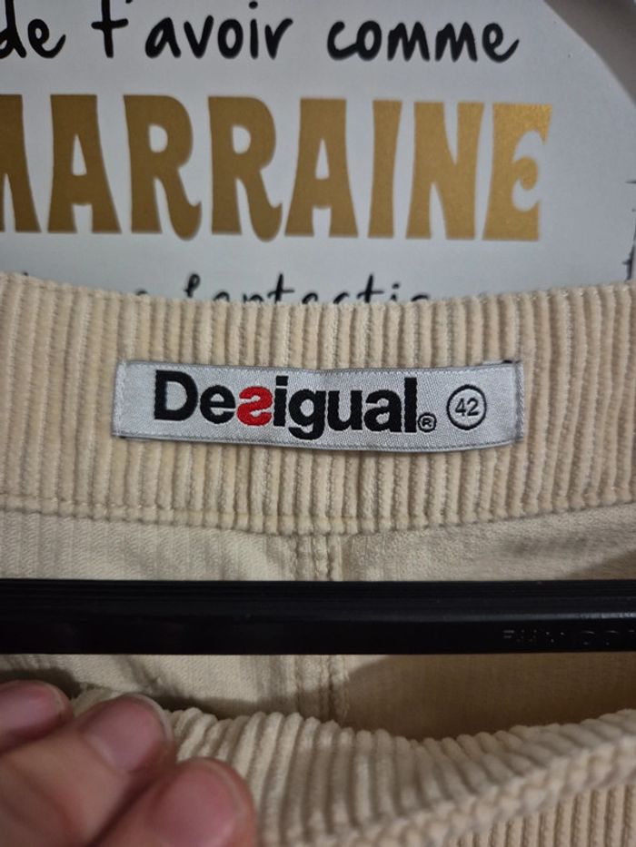 Mini-jupe forme trapèze velours côtelé beige Desigual taille 42 - photo numéro 1