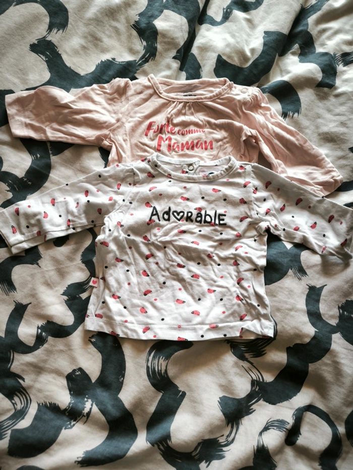 2 T-Shirt manches longues 3 Mois Mots d'enfants