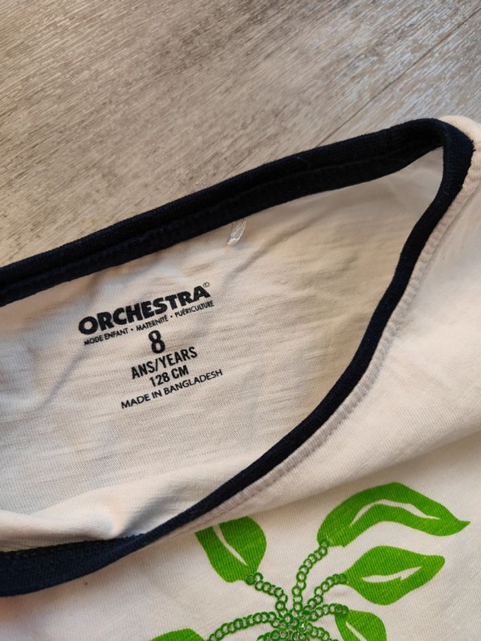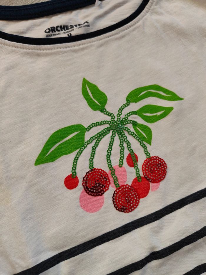 Impeccable 🩷 Orchestra 👧> tous mes articles taille 8 ans : #taille8ansDressingTC 🛍️Réduction sur les lots 🥰 >> voir mon profil pour les catégories 🌺 Maison non fumeur #8years 8Y girl fille été basic haut top tshirt tee-shirt blanc bleu Okaïdi H&M C&A Zara Vertbaudet Orchestra Kiabi Gémo LaHalle sequins strass summer cerises rayures marinière