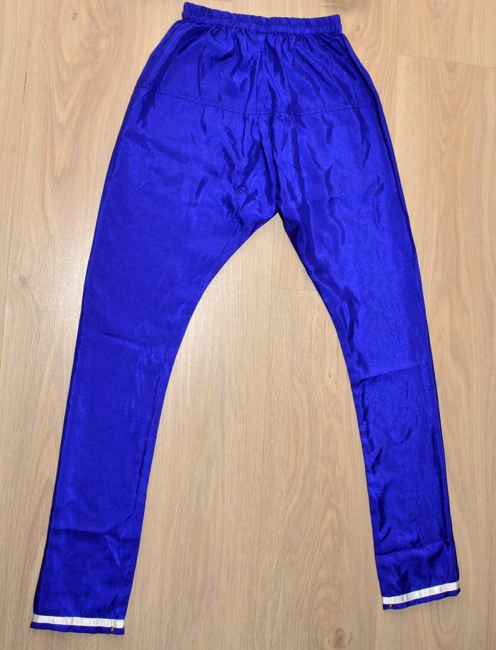 pantalon fin taille haute taille 30 bleu électrique uni satiné