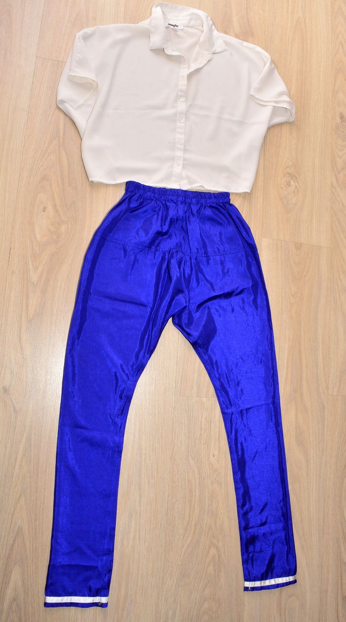 pantalon fin taille haute taille 30 bleu électrique uni satiné - photo numéro 1