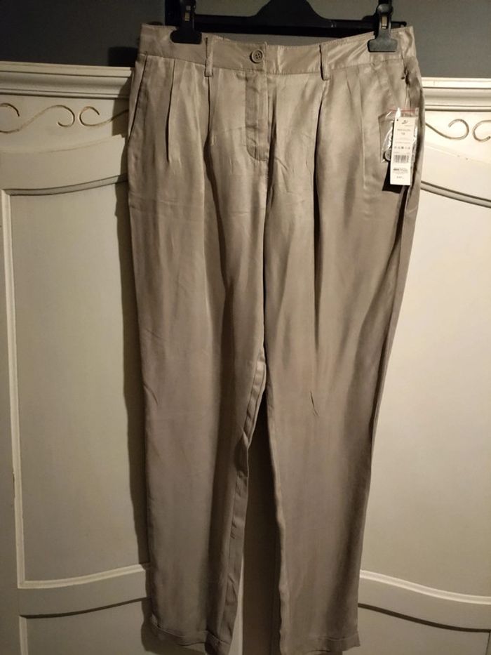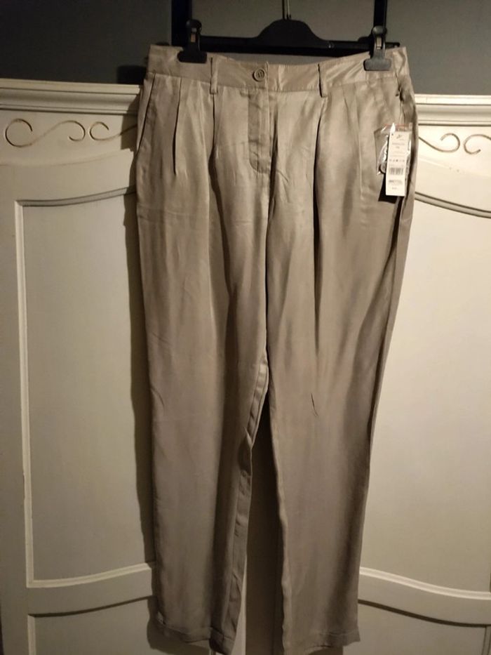 Pantalon a pinces en soie et viscose très agréable à porter neuf avec étiquette taille 38 - photo numéro 1