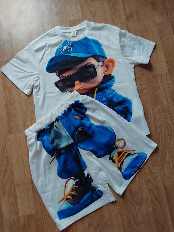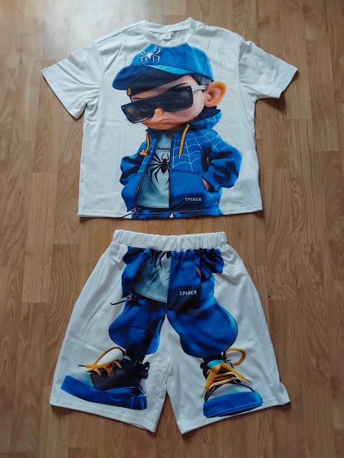 Très jolie ensemble shorts neuf pour garçon taille 10ans mais fausse taille d'usine Très grand) je dirais de 13/14ans