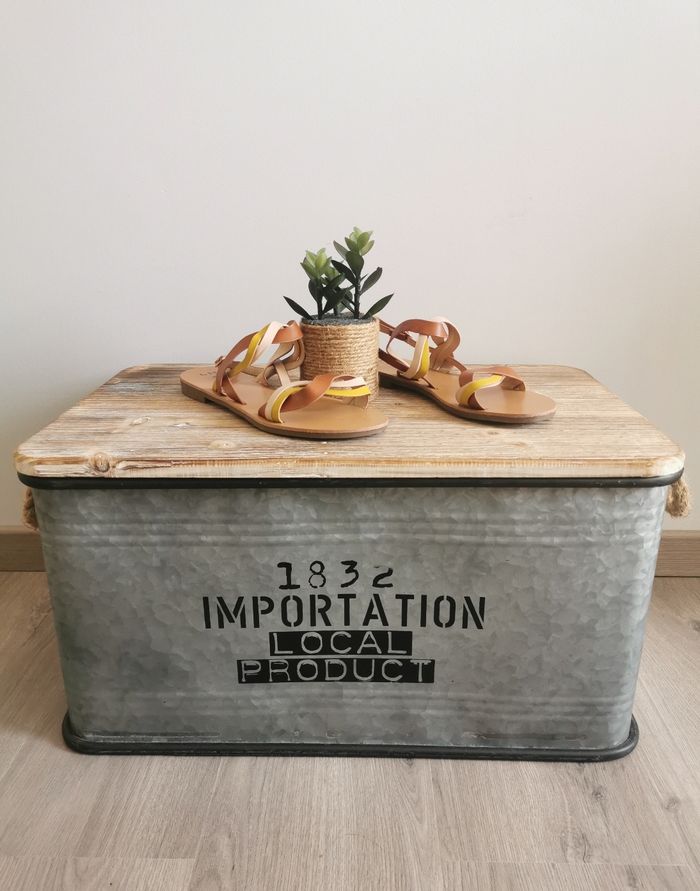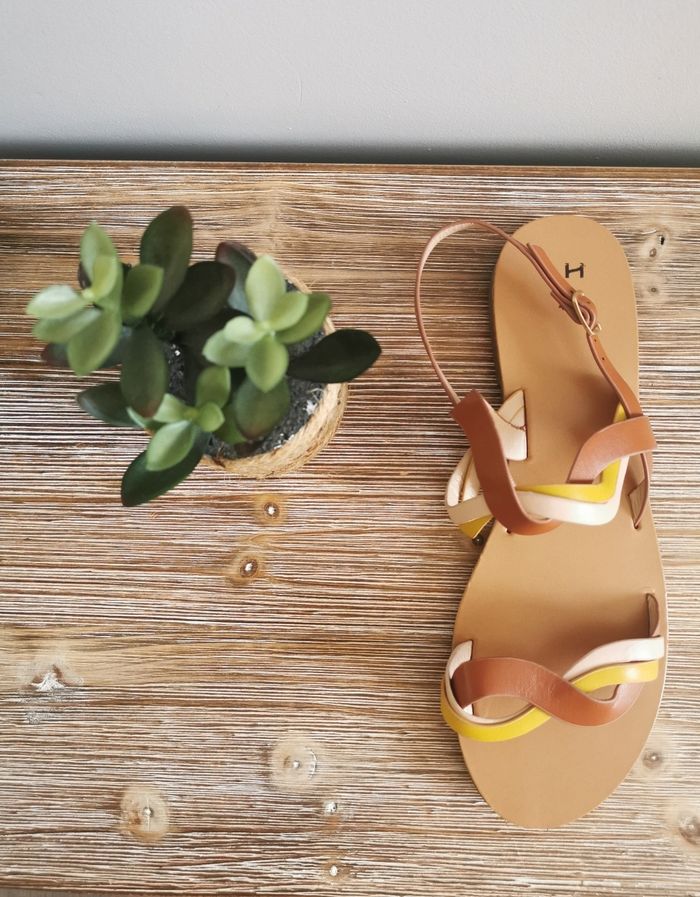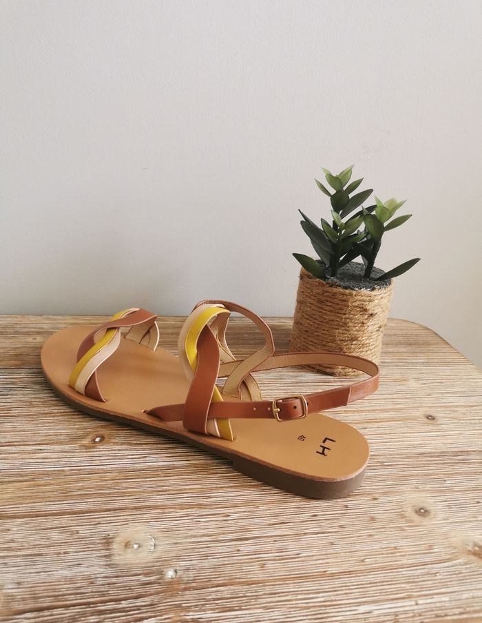 🩴ETAT DE L'ARTICLE: 10/10 ✅️ Sans étiquette, jamais portées Sandales plates à brides croisées 👡 La Halle 👩 👣 Pointure 40 👣 • Matière: Synthétique • Fermeture par boucle réglable à la cheville 🦶 • 2 brides croisées marron 🟤 jaune 🟡 beige ⚪️ Neuves, parfait état👌, jamais portées 🔴