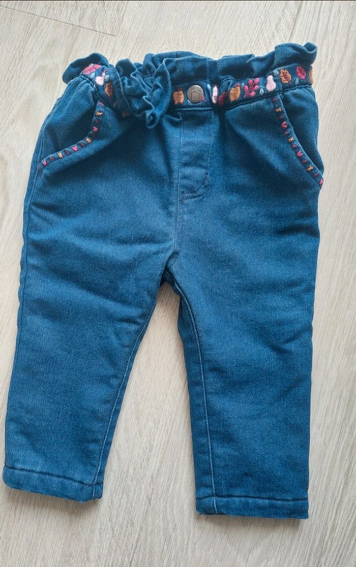 Pantalon chaud avec doublure polaire Taille élastique. Le bouton est factice. Jolies broderies Taille 9 mois / 71 cm Du pareil au même