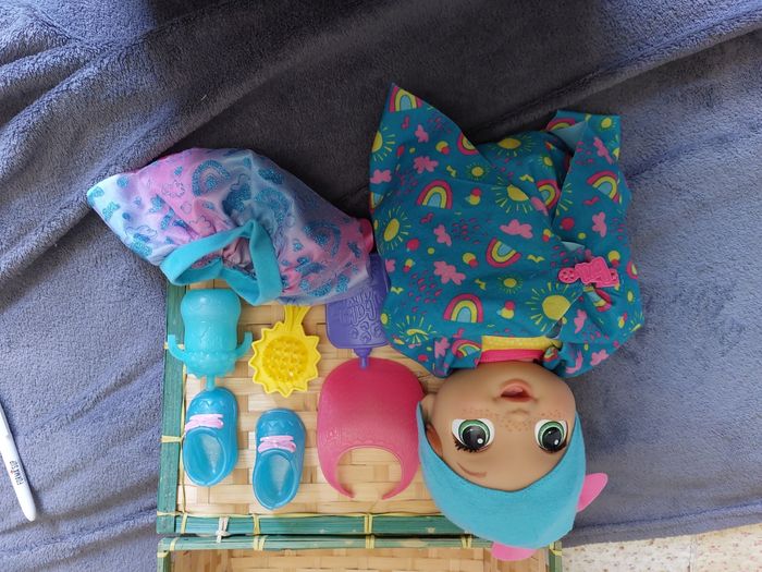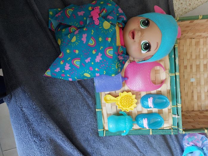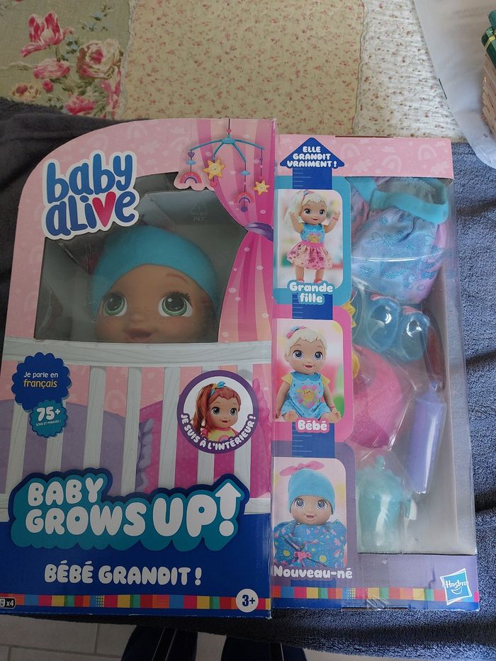 Vends poupon bebe grandi de chez hasbro. Comme sur la photo. Très bon état. Tous les accessoires ainsi que certificat de naissance à remplir. Dans son carton d origine