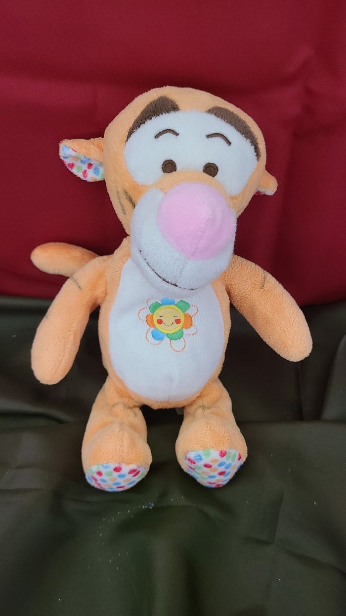 Disney doudou peluche collection Good morning tigrou tigre orange blanc fleur soleil - photo numéro 1