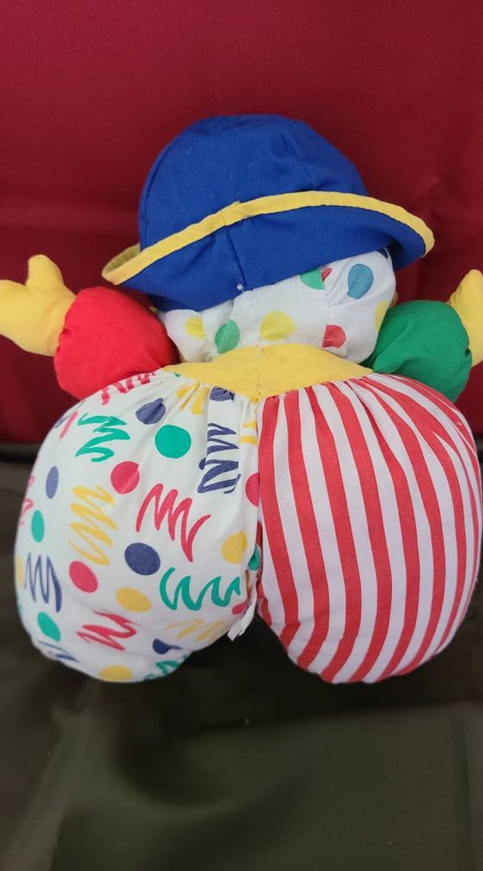 BERCHET VINTAGE DOUDOU PELUCHE CLOWN JAUNE BLEU ROUGE VERT 35CM - photo numéro 5