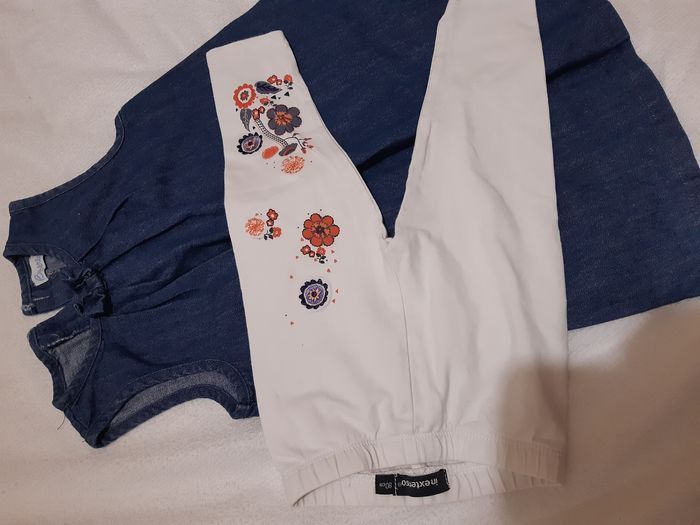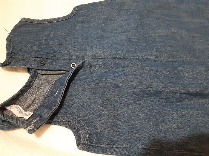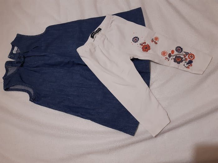 Robe sans manches en jean souple et leggings. Taille 18 mois.