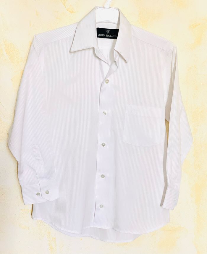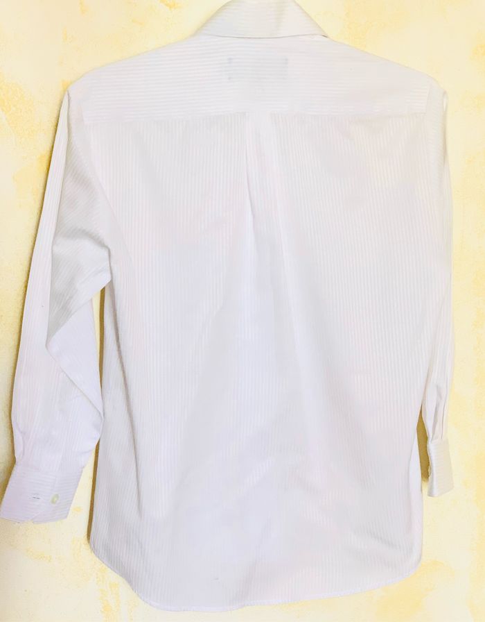 Chemise blanche à rayures fines de tissu John Holden garçon T8 (10 ans) manches longues. Ouverture boutonnée sur le devant. Poignets boutonnés. Une poche sur le devant. Logo brodé. Coton-polyester Pour Communion / cérémonies / fêtes Boutons complets Utilisé 2 - 3 fois. *petite tache au dos en bas, regarder photos ⛔️ Prix FIXES, NON négociables 🚨 👏🏻 Réductions sur les lots 👍🏻 #chemise #chemisegarcon #chemiseblanche #Communion #ceremonie #fete #JohnHolden #cc_garcon10ans