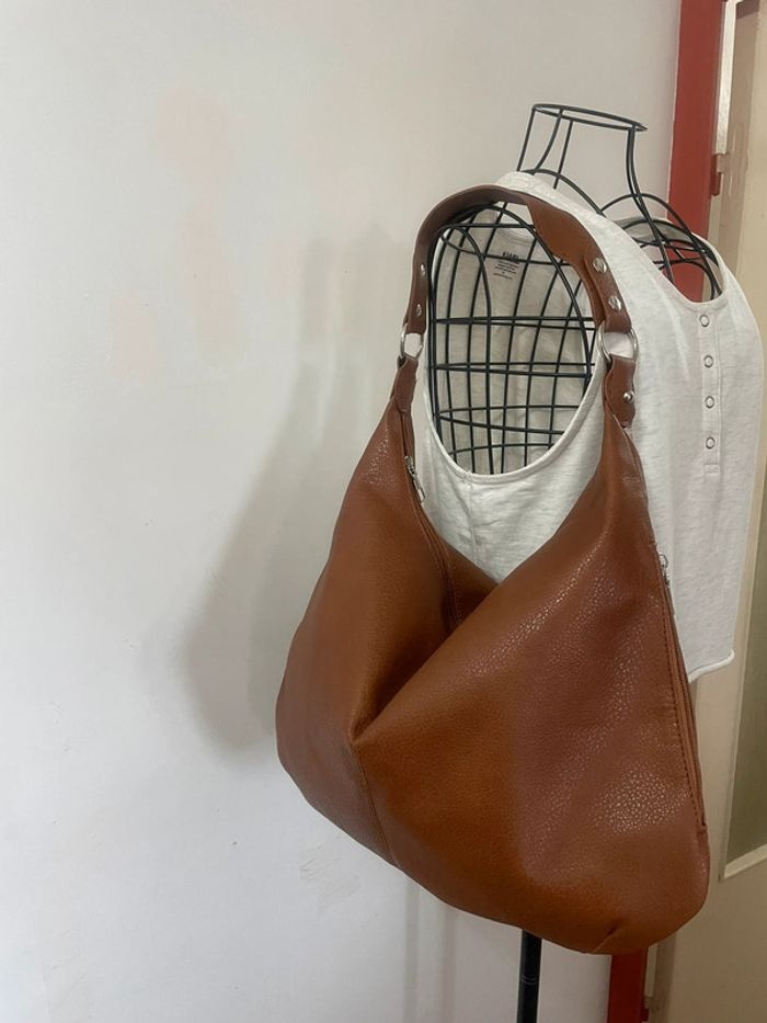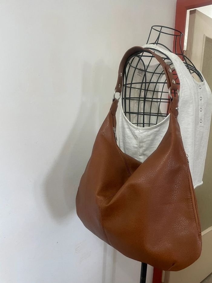 Sac Fourre-Tout Spacieux d'Inspiration Vintage - Sac à Épaule Élégant en Marron avec Fermeture Eclair, Nylon Durable. Long 42,5cm Hauteur 32,5cm 112cm