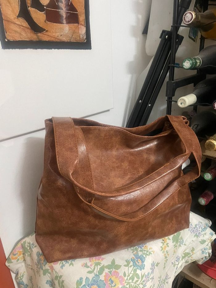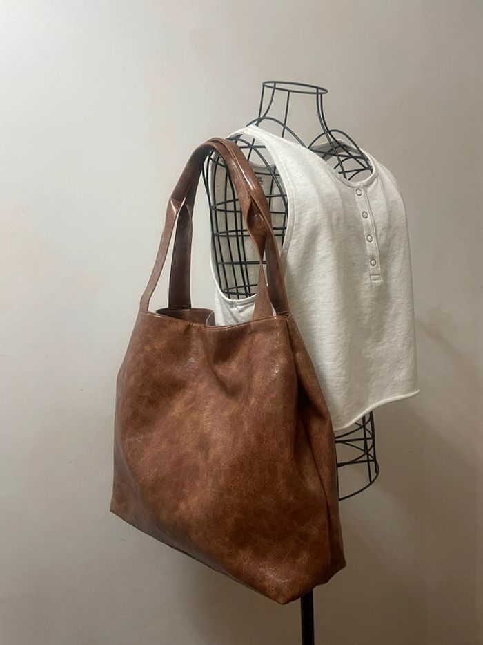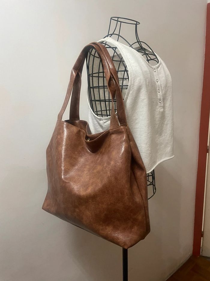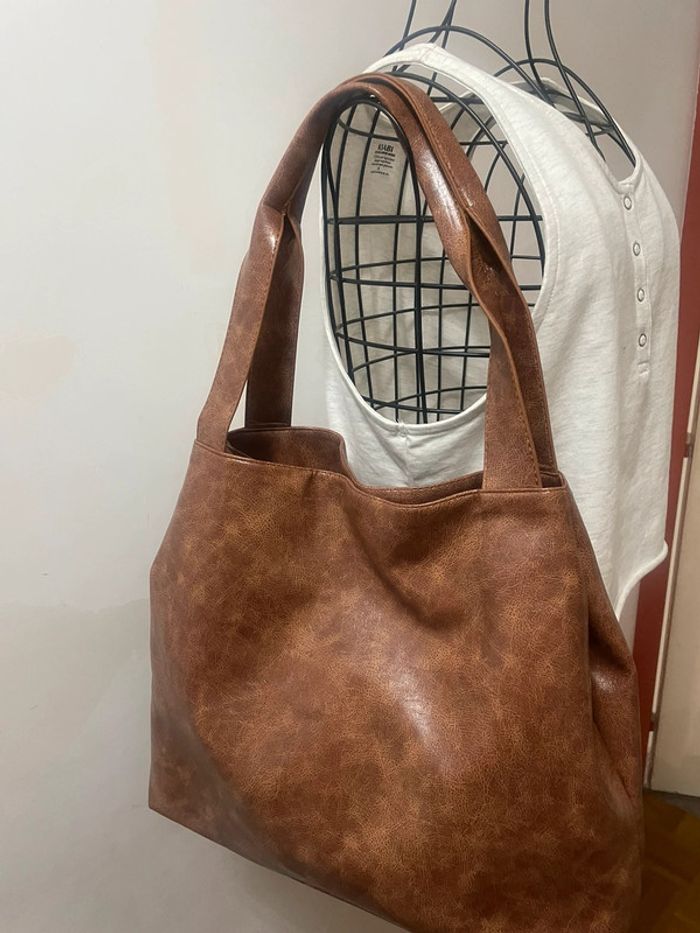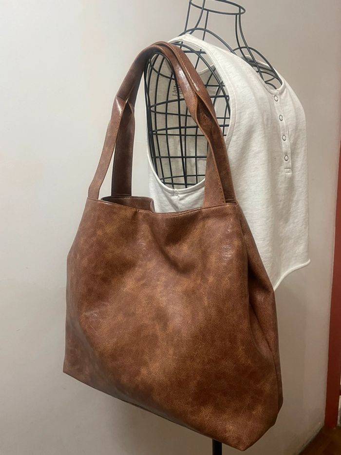 Sac Fourre Simple BRUN de Grande Capacité de Design Texturé de Mode, À Une Épaule. L 36 H 31 l 10