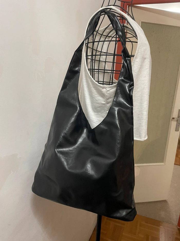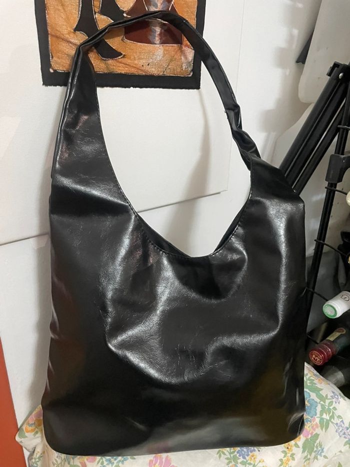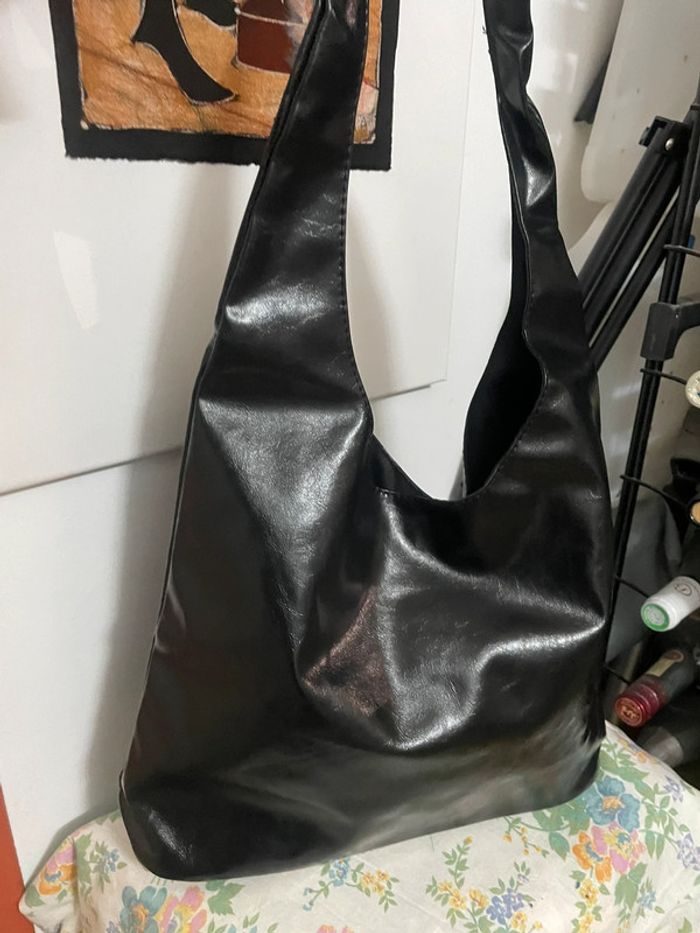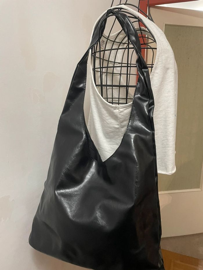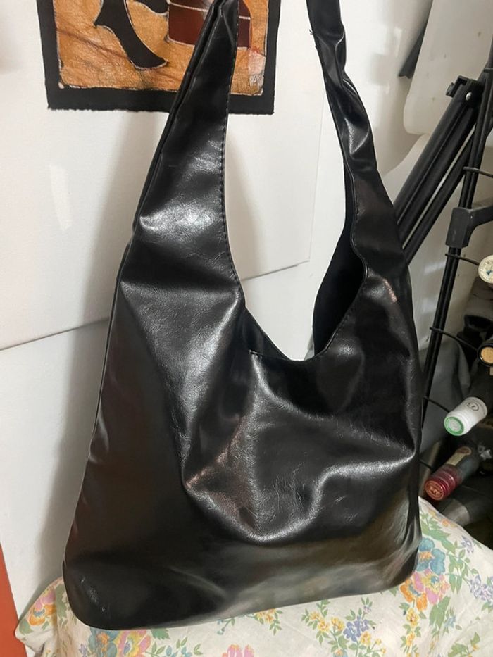 Sac Fourre-tout Végétalien À La Mode, Sac Hobo de Couleur Unie Tendance noir - photo numéro 1
