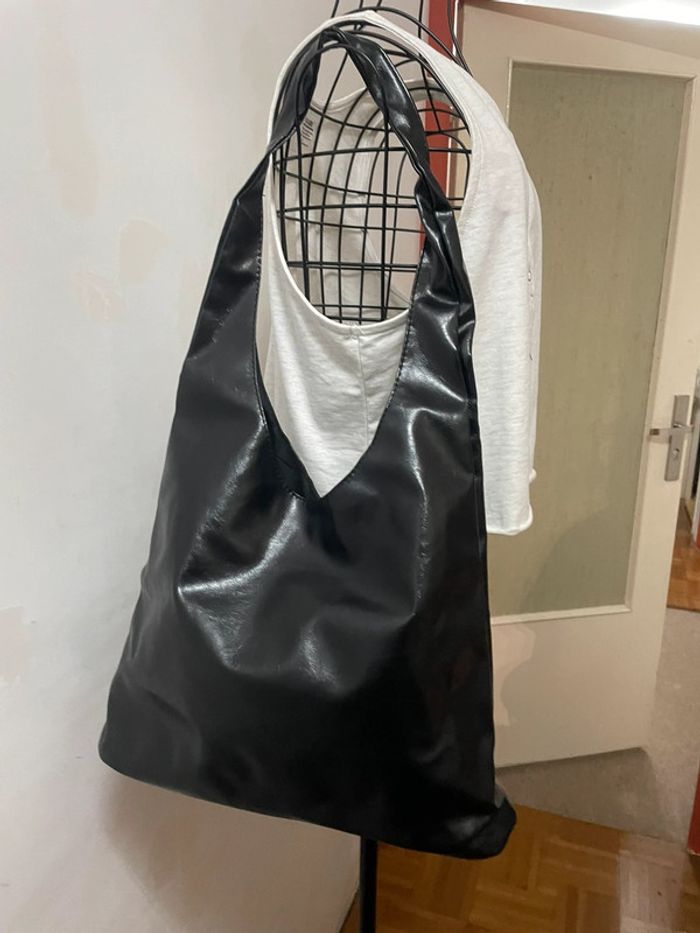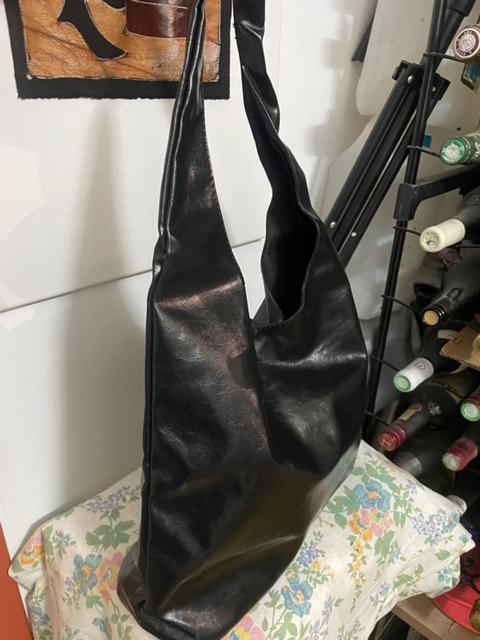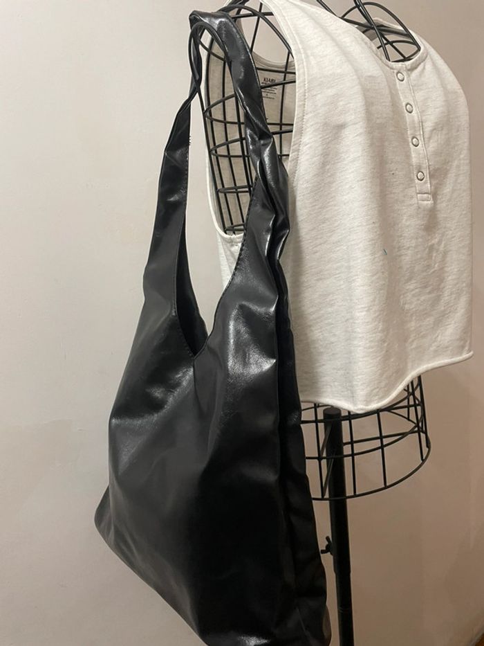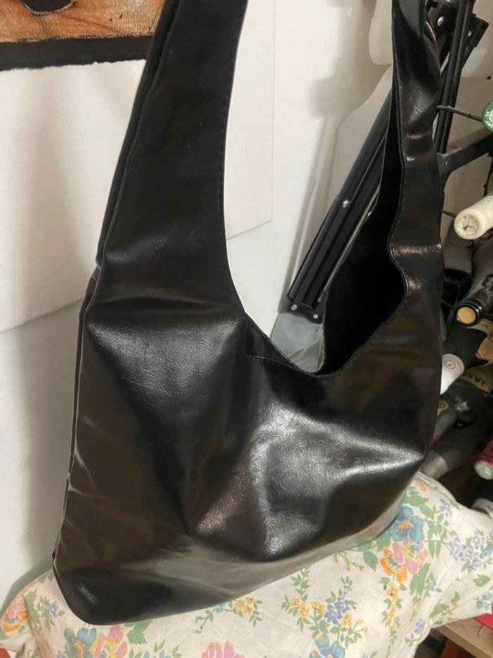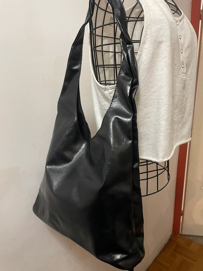 Sac Fourre-tout Végétalien À La Mode, Sac Hobo de Couleur Unie Tendance noir - photo numéro 1