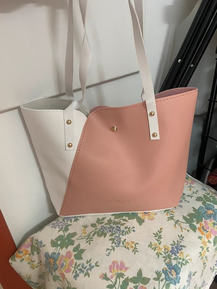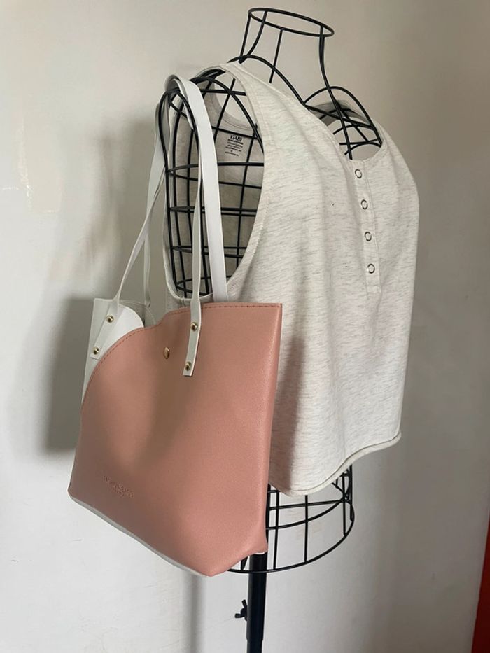 Sac fourre-tout rose à motif géométrique élégant pour femme - Sac fermé avec une pince L 22,5 H 22 l 8
