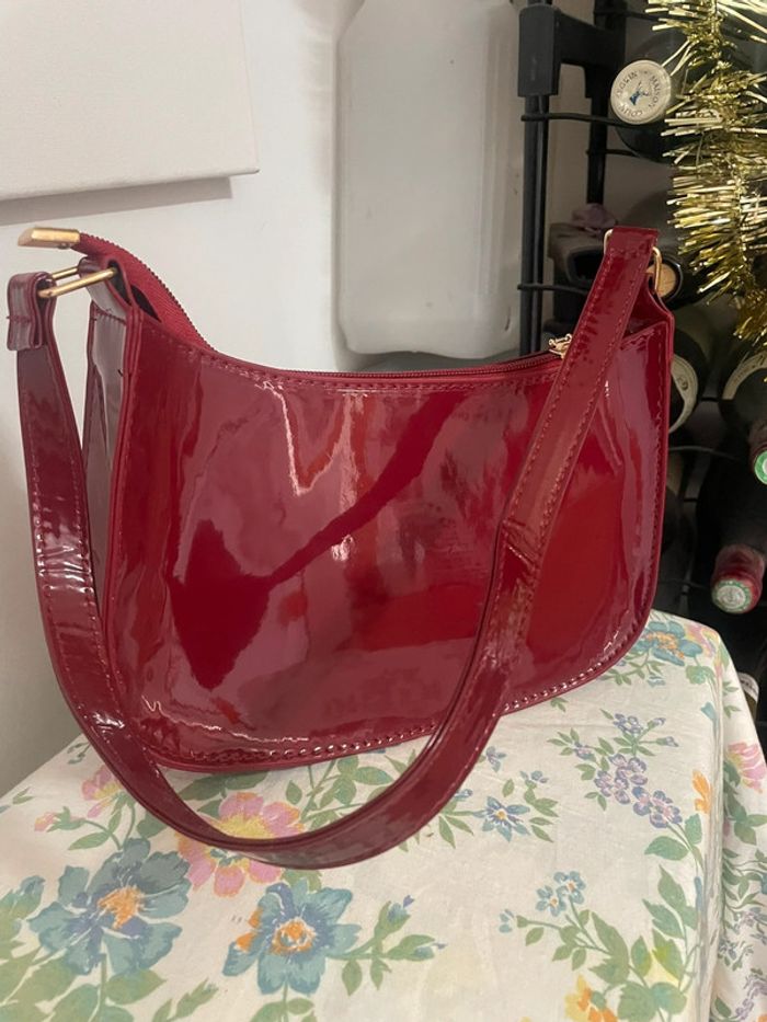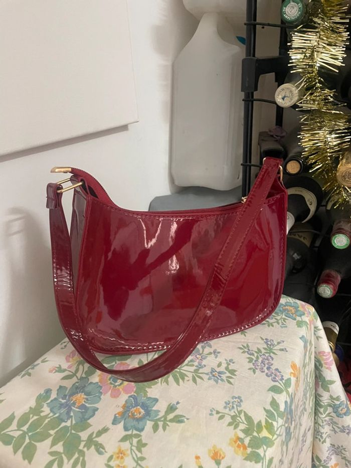 Sac enduit rouge magnifique cuir synthétique verni