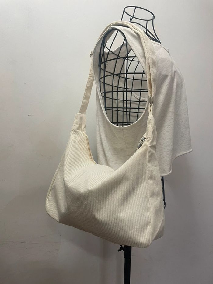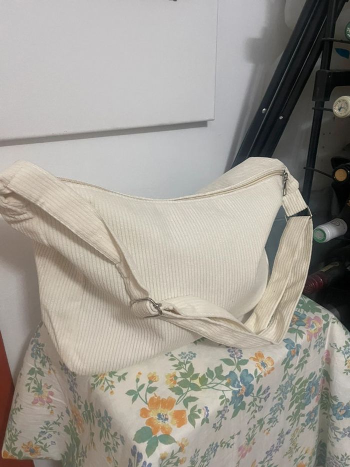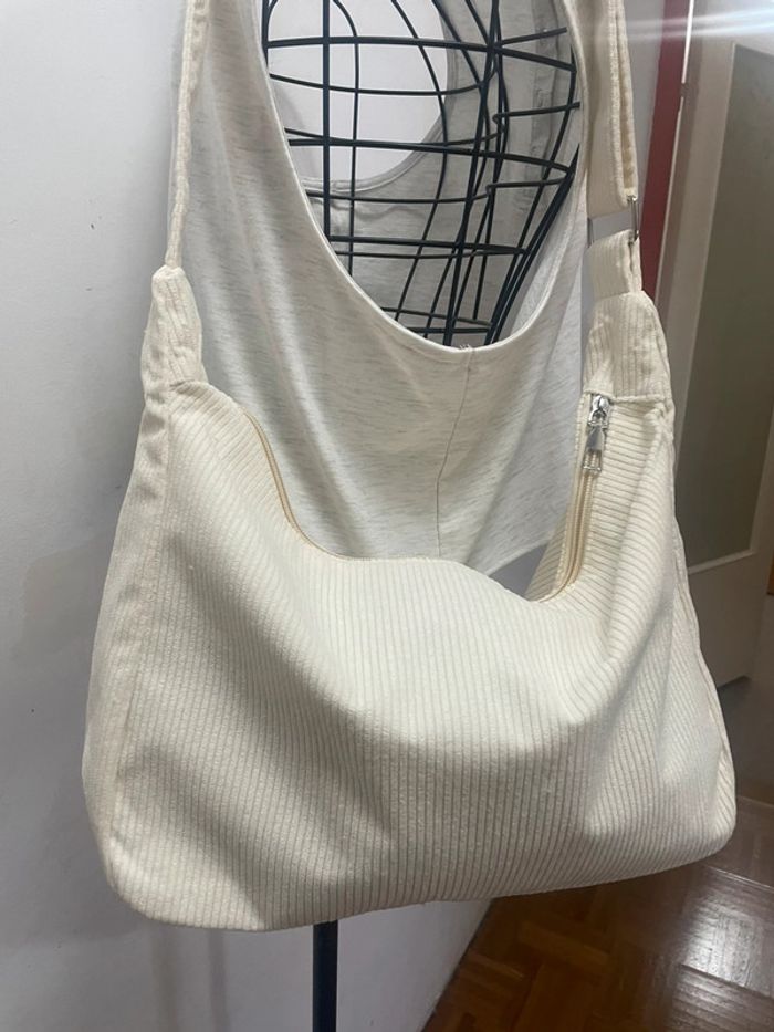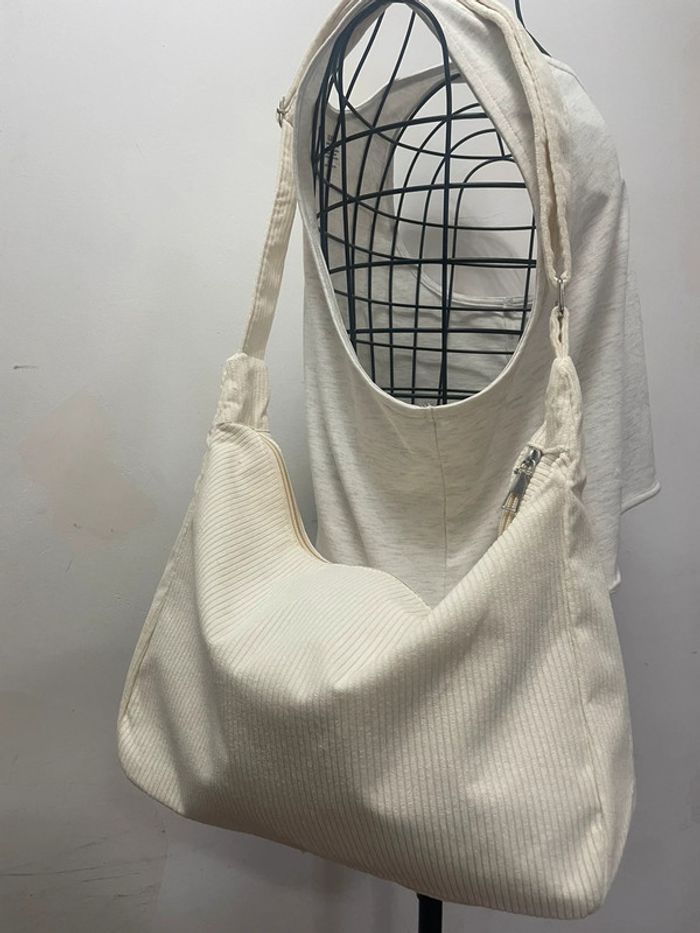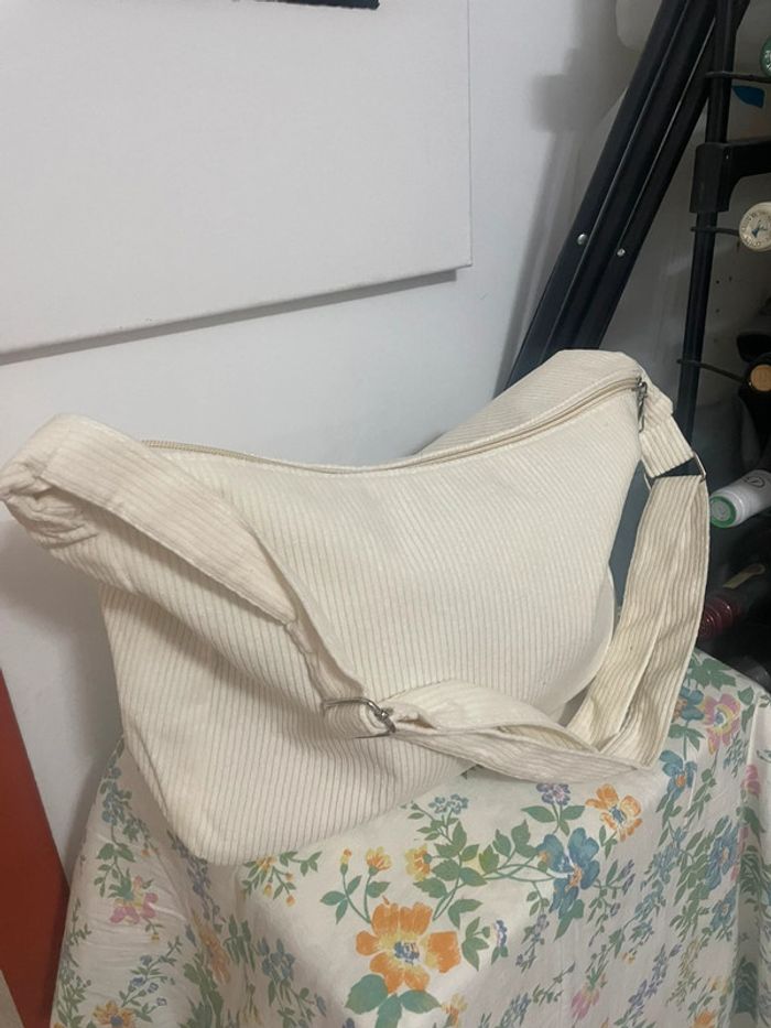 Sac à bandoulière décontracté en velours côtelé blanc avec une bandoulière réglable