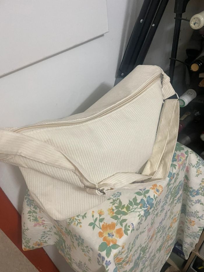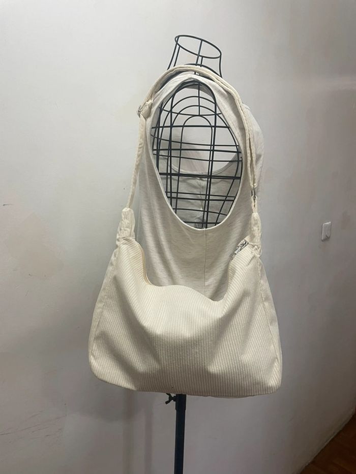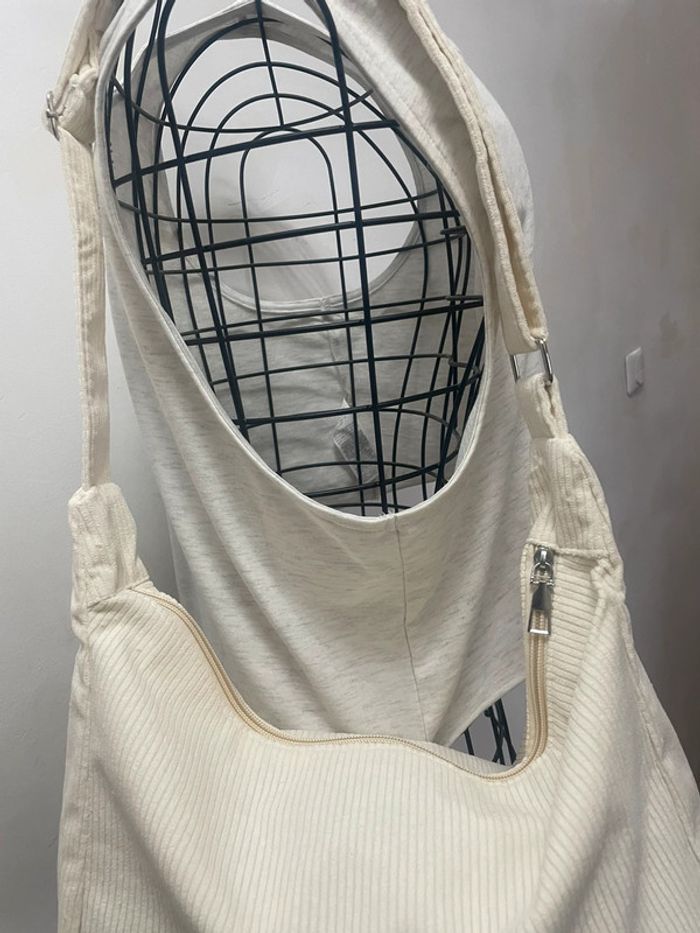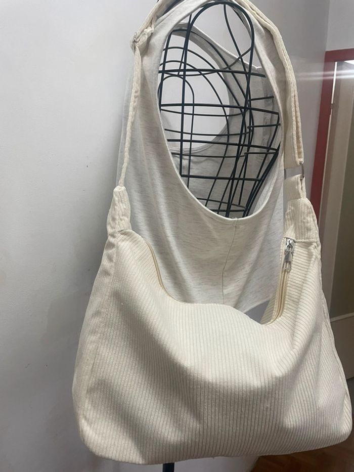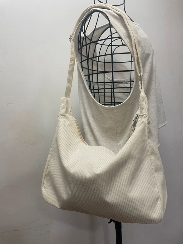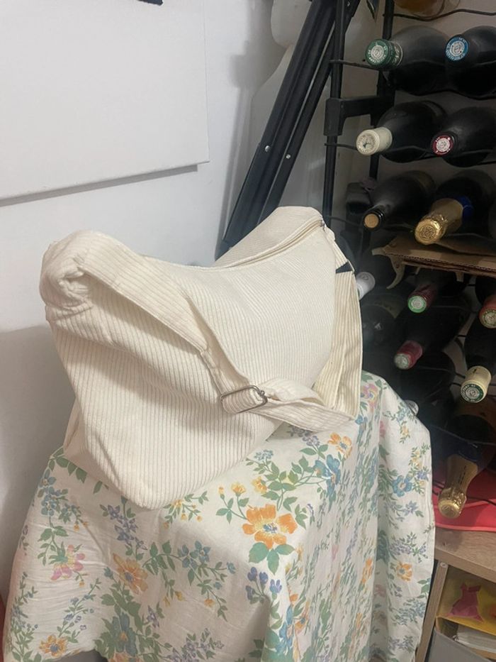 Sac à bandoulière décontracté en velours côtelé blanc avec une bandoulière réglable