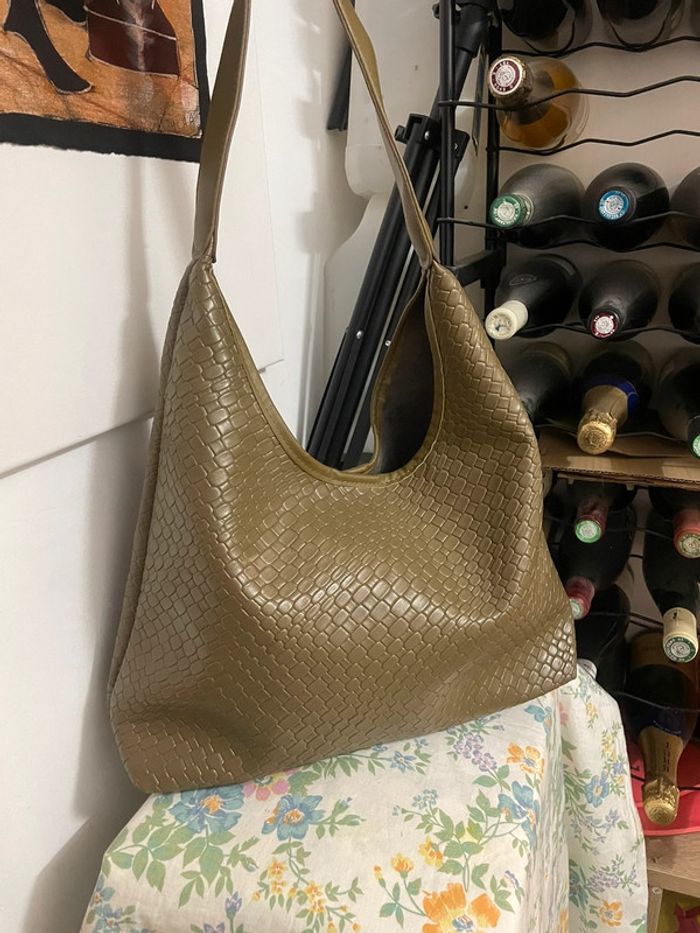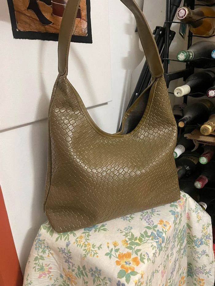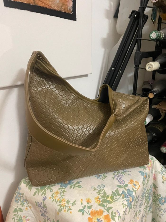 Sac Fourre-Tout en Cuir Synthétique vert  à Motif Tissé Élégant pour Femme - photo numéro 1