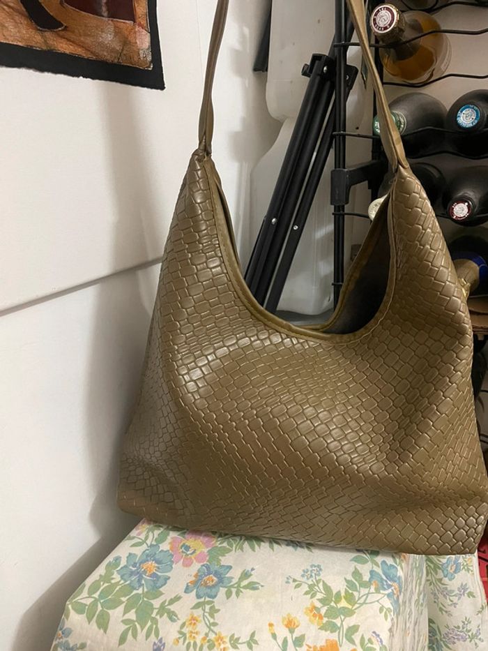 Sac Fourre-Tout en Cuir Synthétique vert à Motif Tissé Élégant pour Femme Long 32 Haut 31 l 9