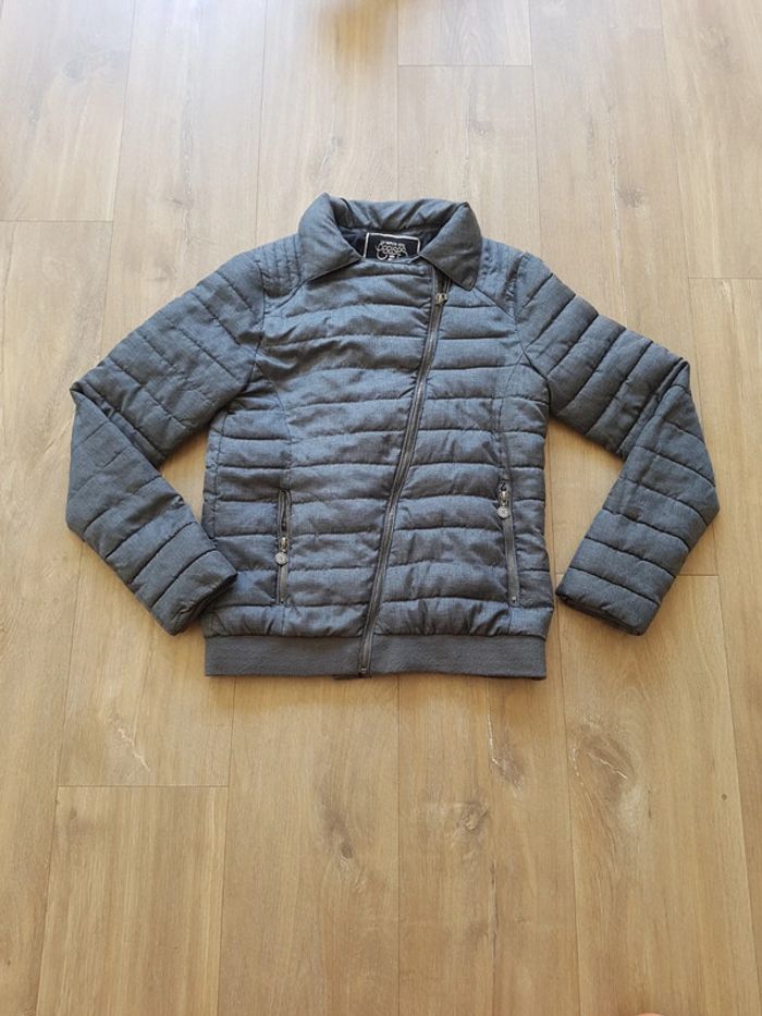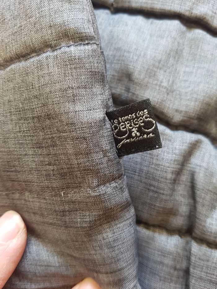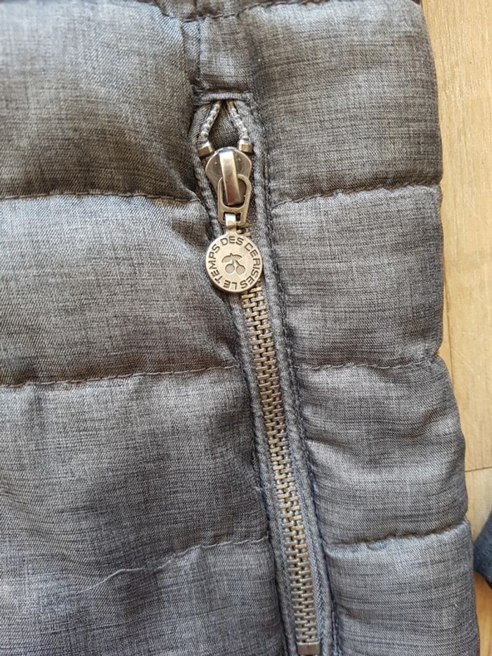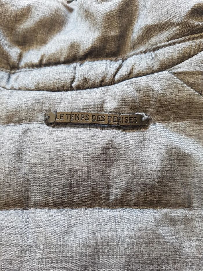 Jolie doudoune grise, Le Temps Des Cerises, taille 16 ans Quelques bouloches derrière sur l'élastique de la taille, un accro à été reprisé dans le dos mais c'est vraiment très discret (environ 1,5cm) et il manque la cerise sur le zip de la fermeture éclair mais cela ne gêne en rien, voir les 3 dernières photos