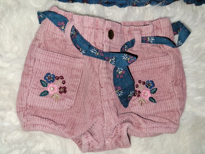 Ensemble constitué d un short chaud en velours, D une blouse brodee, Porte 2 fois Et d un bandeau neuf étiqueté