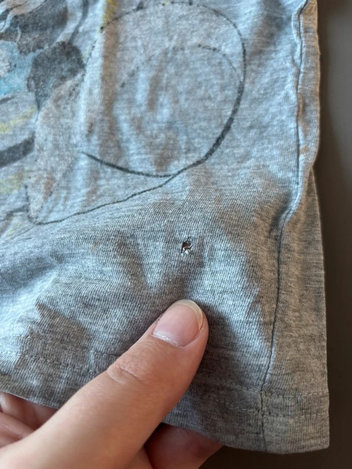 Bonjour, je vends un tee-shirt pour garçon 3 ans pour 2 euros. Il a un petit trou.