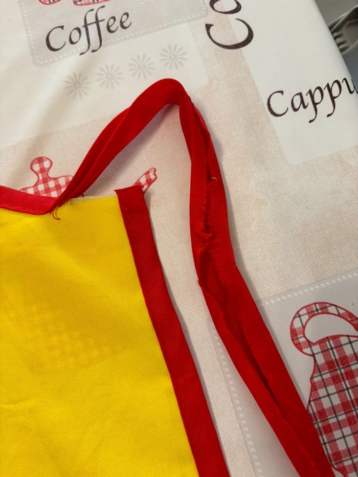 Bonjour, je vends un tablier pour garçon 8 ans pour 11 euros. Il est légèrement craqué au niveau de l’attache.