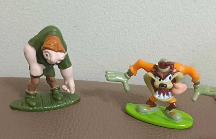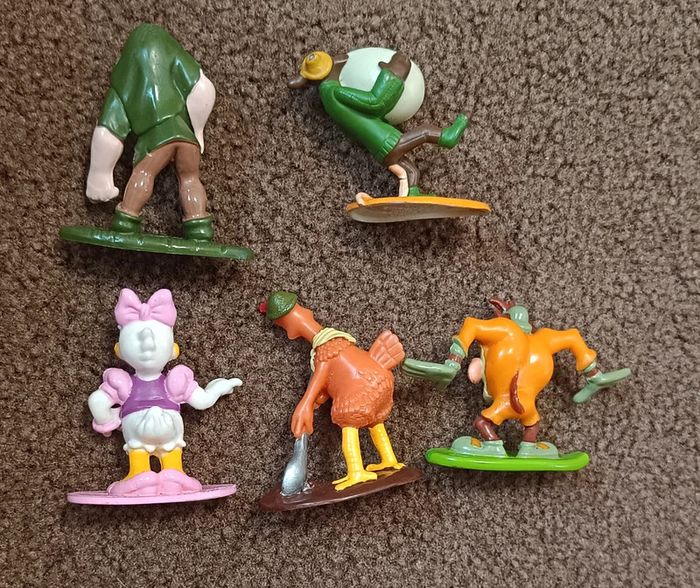 Lot figurines Pixar Disney Nestlé - fetcher chicken run DreamWorks 1999 - ginger chicken run - Daisy Mickey - Taz diable Tasmanie Looney toons freer iders - bossu de notre dame Jouet figurine articulée collector, collection vintage Maison non fumeur et sans animaux n'hésitez pas a faire des lots