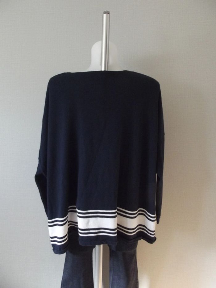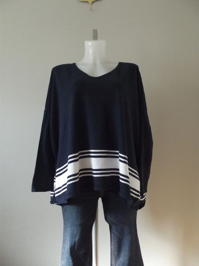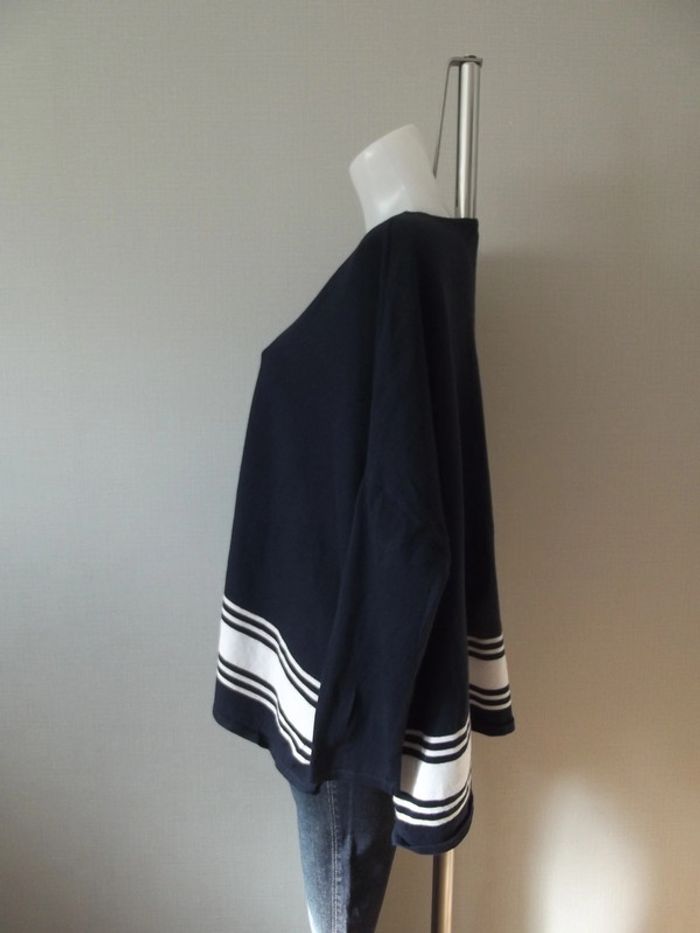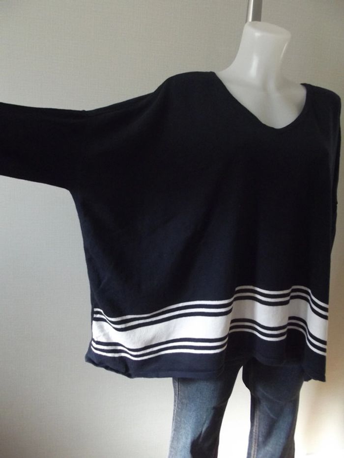 Pull bleu marine et blanc extra large taille M/L Matières 55%Coton 25%Polyester 20%Viscose