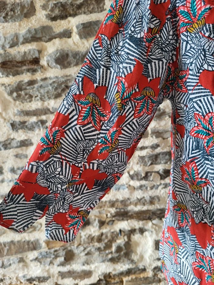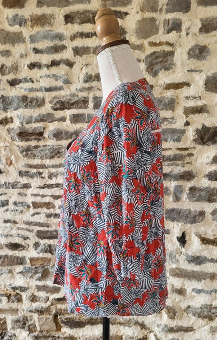 Blouse manches 3/4 fleurie rouge noir et blanc Caroll Taille 40